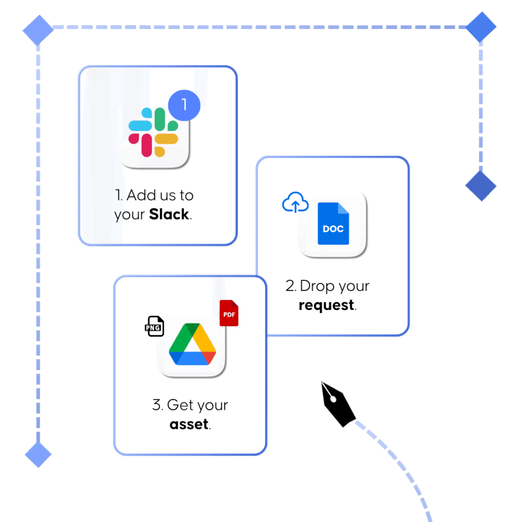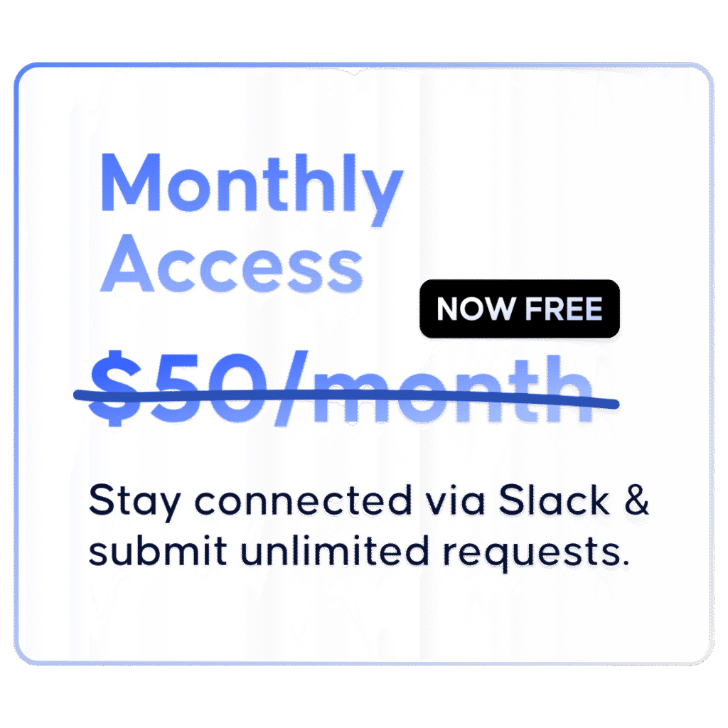 Your creative team on standby— no contracts,no commitments. Just ping us on Slack when you need a designer, and we’ll get it done.
